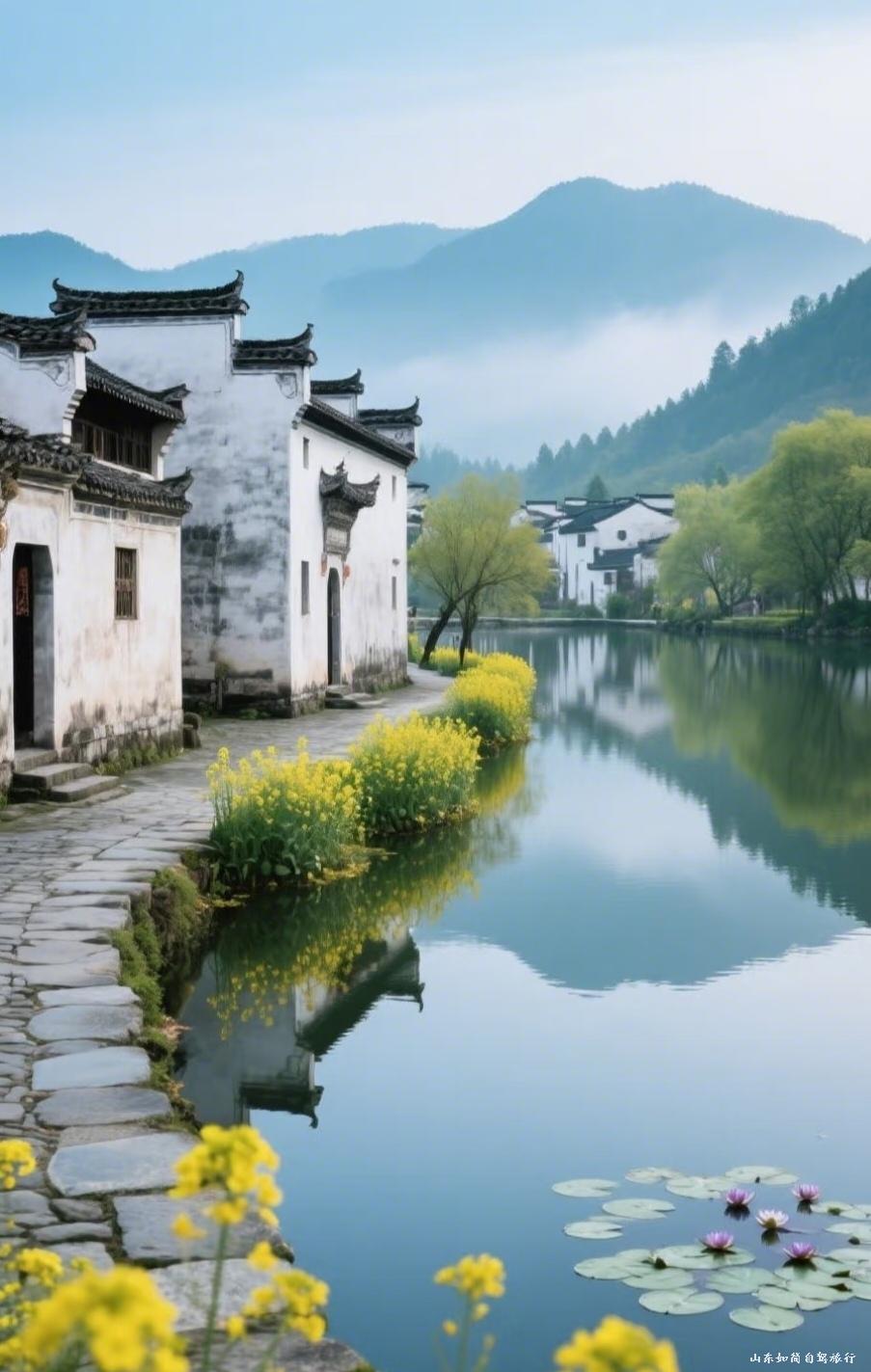 这座坐落于黄山脚下的徽州古村落,宛如一幅永不褪色的水墨长卷在青山绿水间徐徐展开。依山傍水的牛形村落布局巧妙融合了自然与人文的智慧,月沼如镜倒映着白墙黛瓦与马头墙的高低错落,南湖畔的春晓与书院影为画卷添上灵动一笔;清晨薄雾中的倒影如诗如梦,雨后青石板上水珠轻滚更显水墨韵味,漫步青石巷,能听见水圳潺潺伴着浣衣声,祠堂天井透下的光晕洒落历史尘埃。舌尖上的徽州同样令人向往,村口飘香的毛豆腐、滋味浓郁的臭鳜鱼与腊八豆腐,是烟火人间最亲切的滋味。